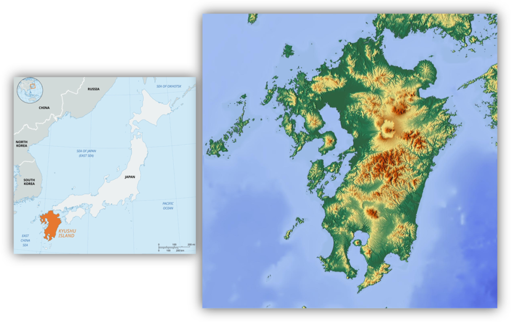 קיושו, שמשמעות שמו:  “תשעת המחוזות”, הוא האי השלישי בגודלו ביפן ואחד המגוונים שבהם. האי מתאפיין בנוף דרמטי ורב־עוצמה: רכסי הרים געשיים, עמקים ירוקים, חופים פראיים ושפע מים תרמיים – תוצאה של פעילות טקטונית מתמדת. האקלים הדרומי והקרבה ליבשת אסיה הפכו אותו לאורך ההיסטוריה לשער הכניסה של יפן לעולם.